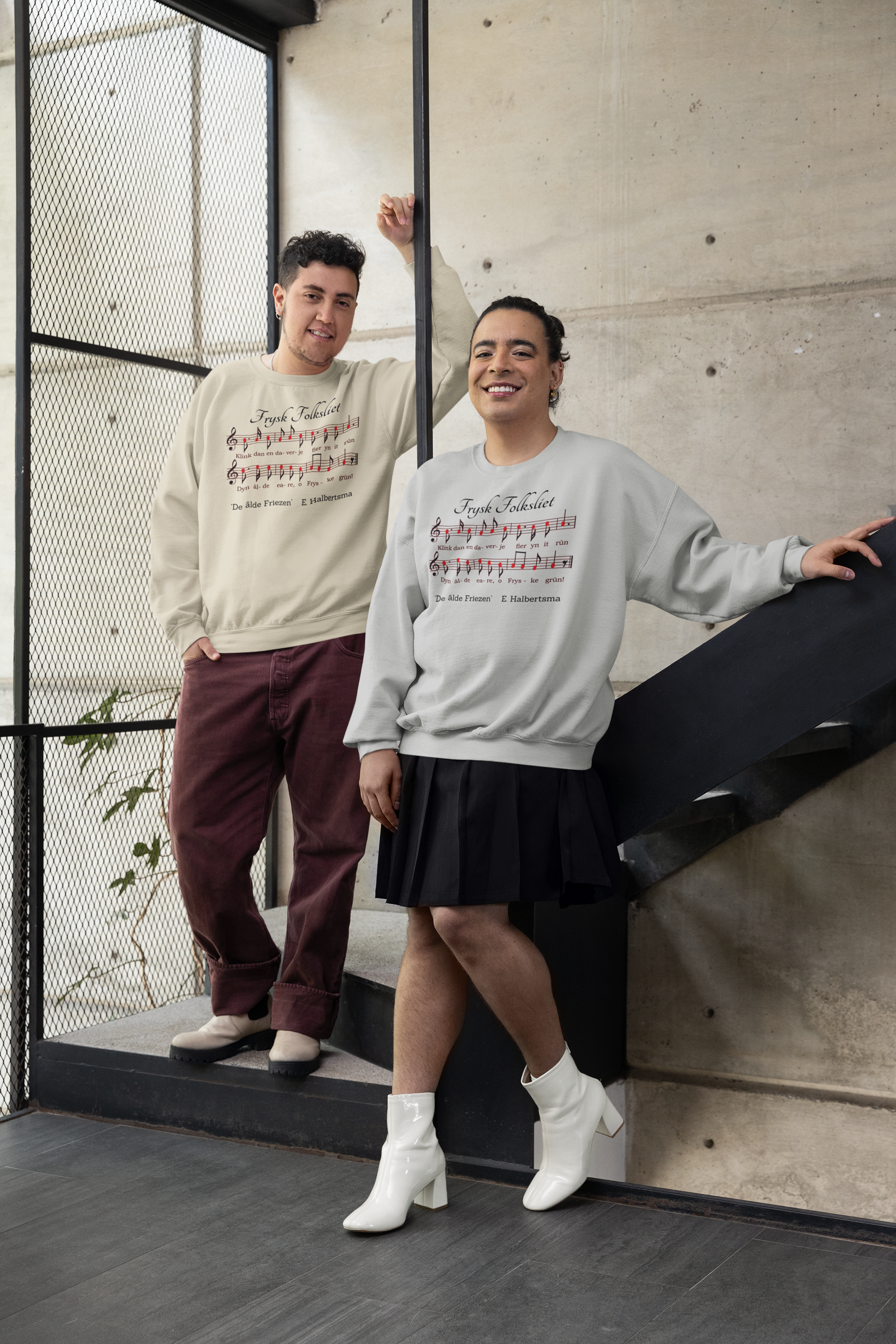 Draag de Friese cultuur met trots met deze prachtige sweater die het begin van het refrein van het Frysk Folksliet van E.Halbertsma combineert met een uniek design van rode pompeblêden als muzieknoten. Deze trui is een ode aan Friesland, waarin traditie en stijl samenkomen.