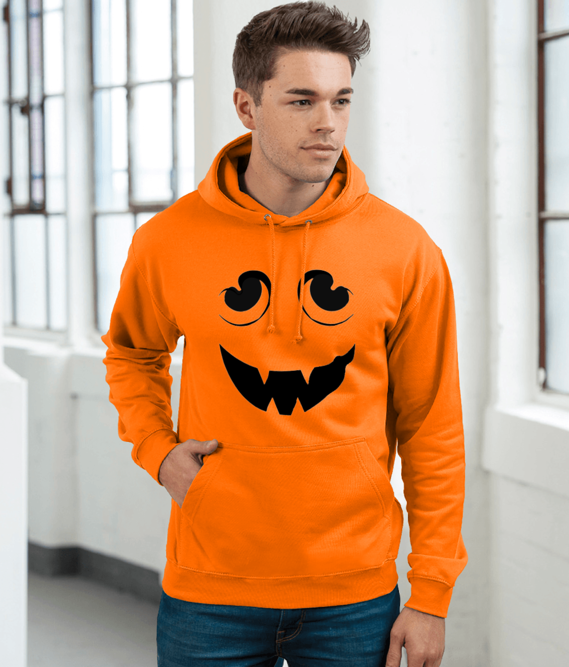 Steek jezelf in de ultieme Halloween-sfeer met deze oranje Halloween hoodie!