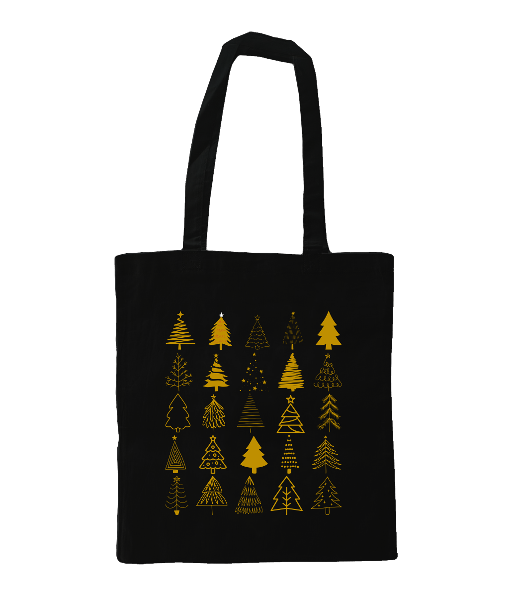 Breng de Friese feestdagenstijl naar jouw garderobe met deze unieke kersttas Deze tas is versierd met een patroon van kleine, gouden kerstboompjes in eenvoudige lijnen – perfect voor een subtiele en stijlvolle kerstlook.