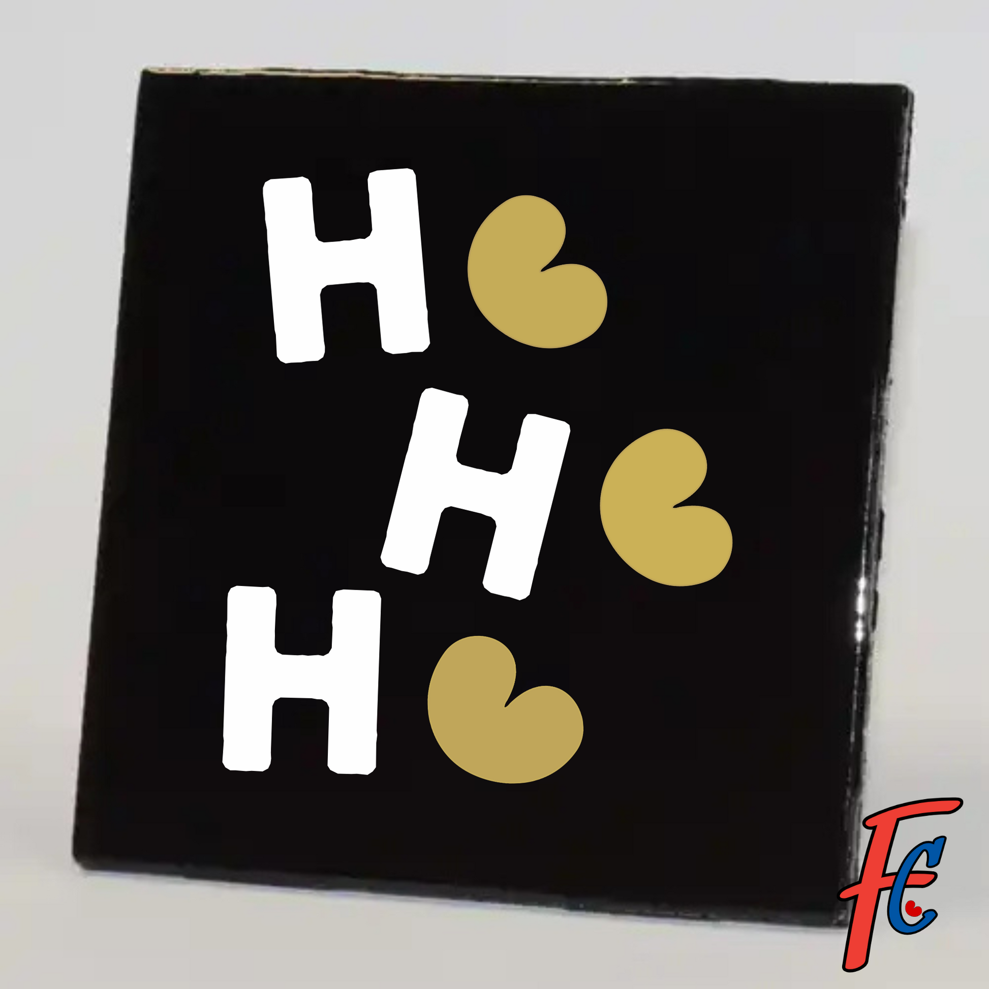 Tegeltje "HO HO HO" – Met Gouden Pompeblêd (10 x 10 cm)